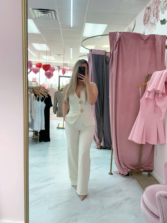 Ivory 2pc Vest Top With Pants Set