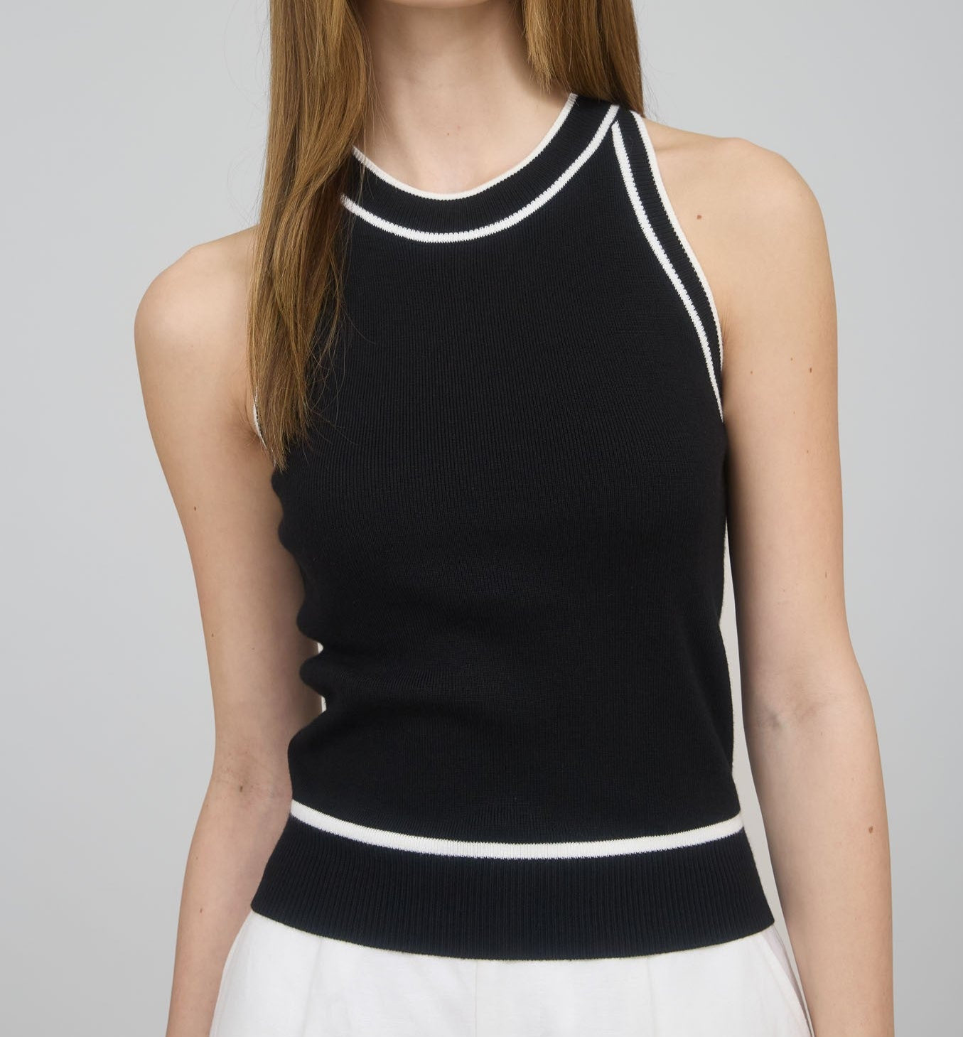 Experience the perfect blend of comfort and style with our Contrast Stripe Sweater Knit Halter Top. Made from high-quality materials, this top features a trendy stripe design that adds a touch of sophistication to any outfit. Its halter neckline offers a flattering fit, making it a must-have for your wardrobe.